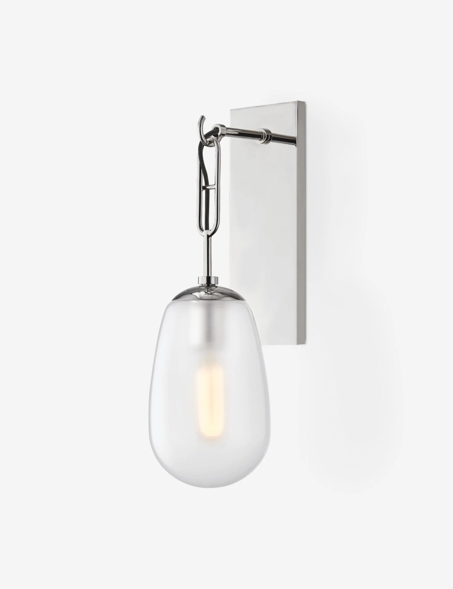 This sconce light’s streamlined design still offers a lot of visual interest with its unique details. Suspended from a modern chain design and featuring an elongated glass shade, this wall sconce adds a refined yet dynamic touch. Style it in an entry, powder bath, or hallway, or pair two together to bookend a bed or sofa.
