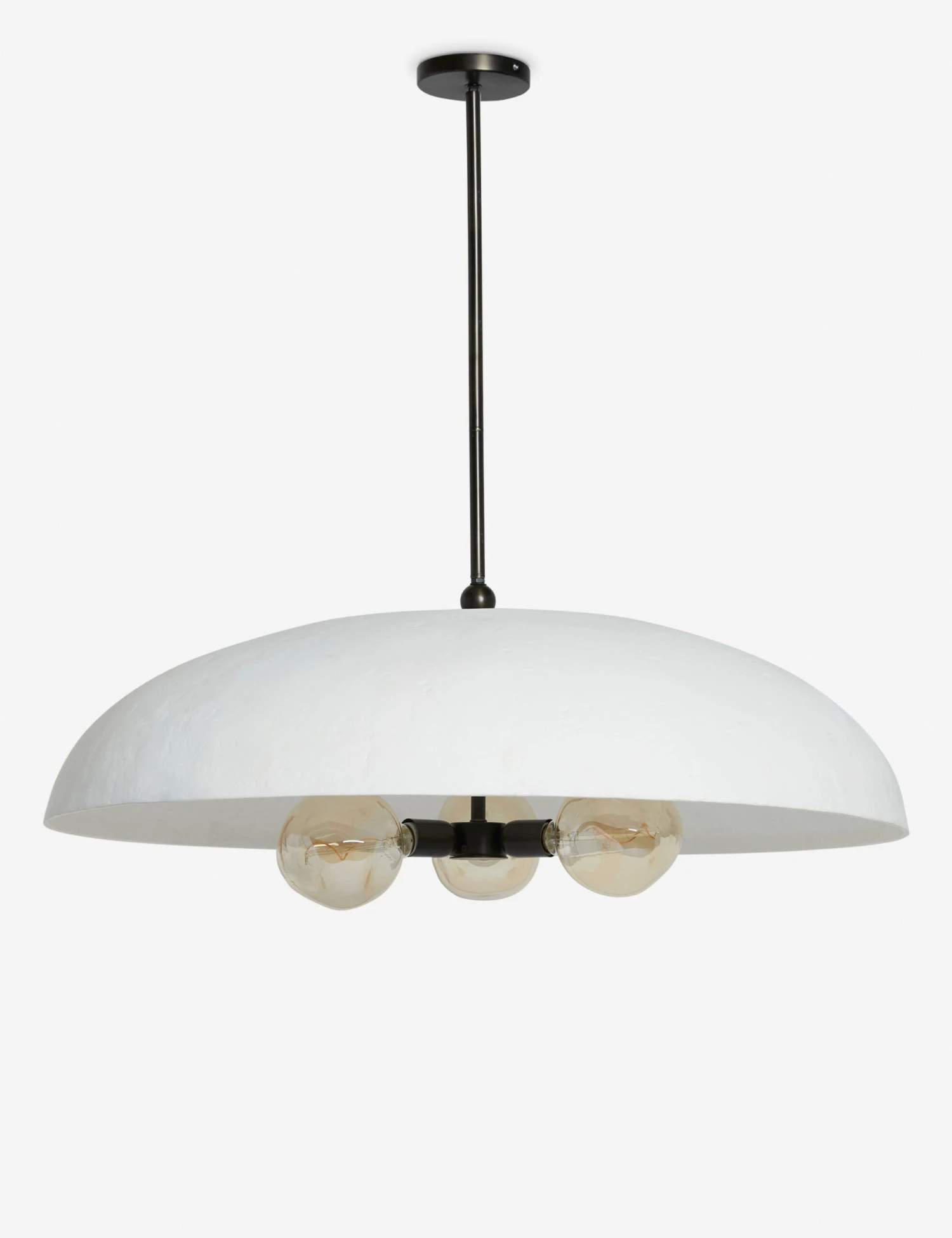 Find your lighting balance with the Brolly pendant—thoughtfully grounded yet thoroughly refined. The crisp line of the matte white shade sits over three bulbs reflecting a bright ambiance throughout the room. This pendant light is from our exclusive Sarah Sherman Samuel collaboration and features all the trademarks of her warm, edited style.