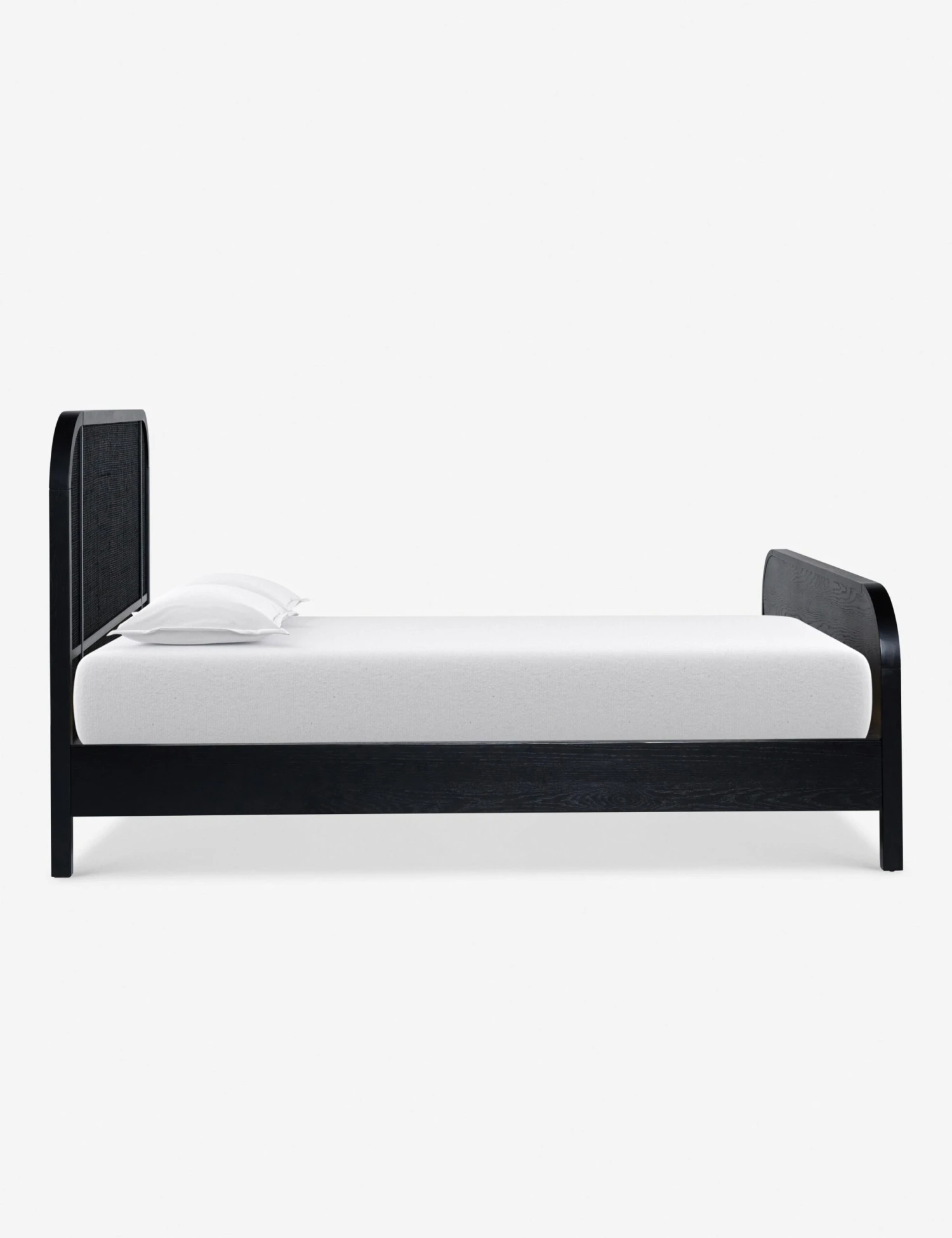 This solid oak bed frame is grounded by curved lines set off by cane paneling at the foot and headboard. A whitewashed finish warmly compliments the arched corners and woven details of this platform bed’s understated design. Echo the natural texture of this cane bedroom furniture with some fresh linen bedding or other handwoven fabrics.
