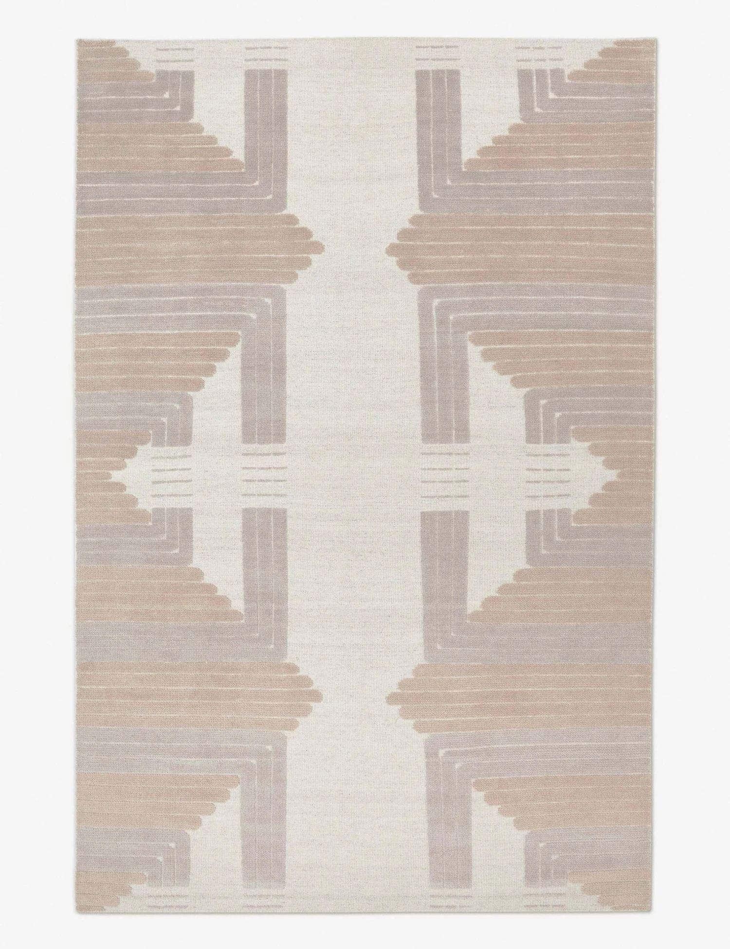 A geometric, hand-knotted pattern adds eye-catching depth and dimension to this flatweave floor rug, making it a dynamic standout in your bedroom or living room. Warm and cool neutral tones are interwoven with viscose yarns to add a hint of sheen to this soft, modern area rug.