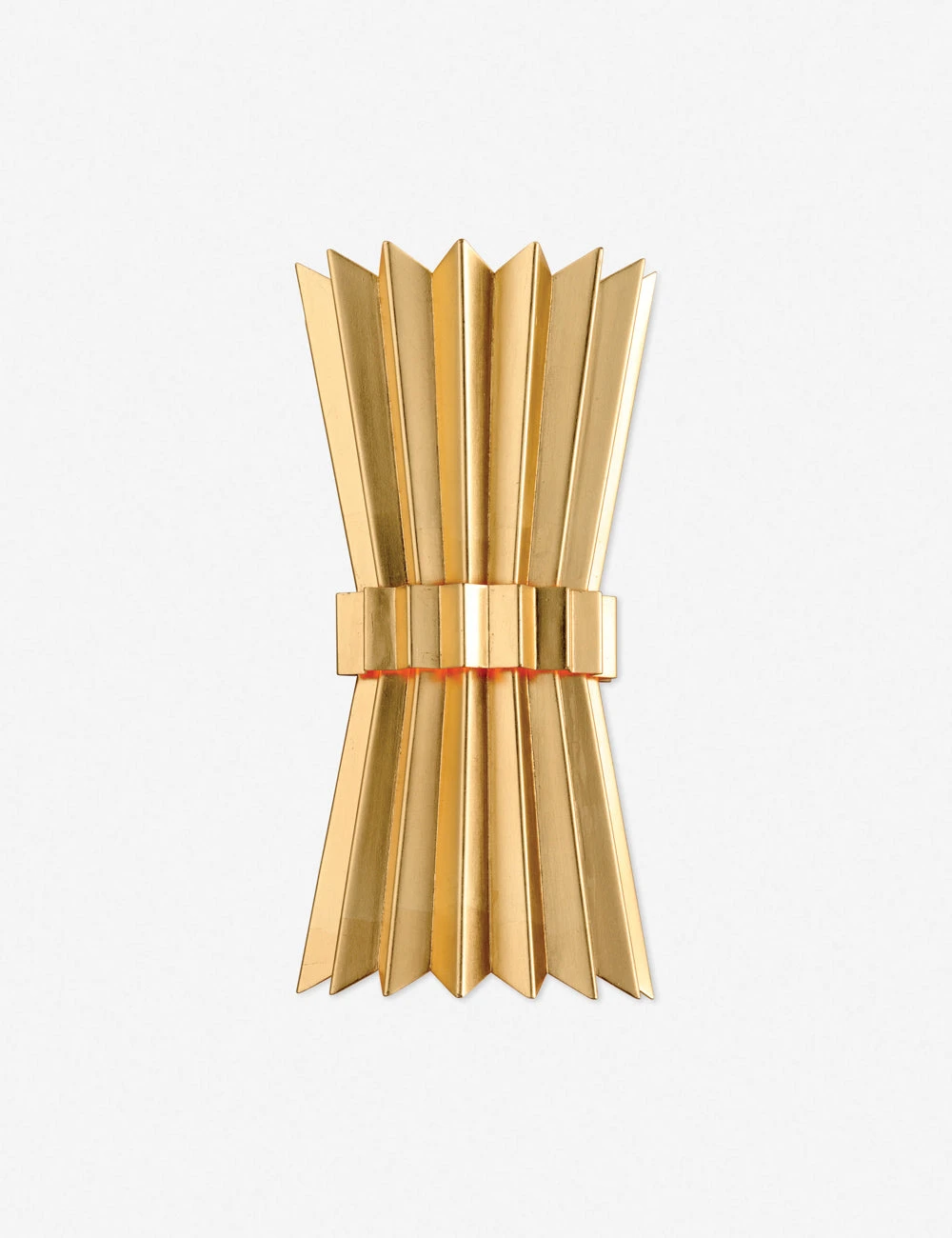 Rich art deco details inspire this angular sconce light with its repetitive spires design. A warm refracted glow emanates from the every angle, making it an eye-catching element to add to your entry, or, you can couple a few together to fram your bed, sofa or sideboard.