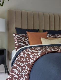 The clean, arched silhouette of this bed frame and headboard features an acacia wood border with plush linen upholstery. We love the pairing of natural materials in this versatile bed for a soft, elegant bedroom upgrade ready for transitional appeal.