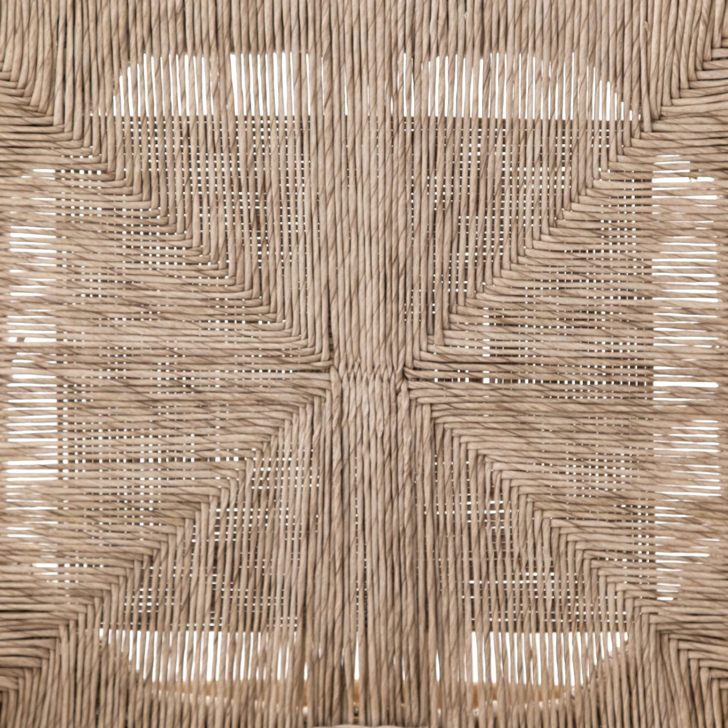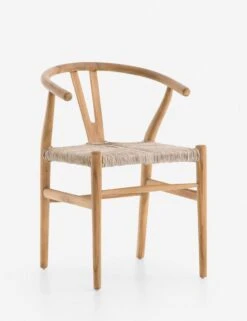 A trendy take on a mid-century favorite, this teak dining chair features a woven seat and a cutout back design.