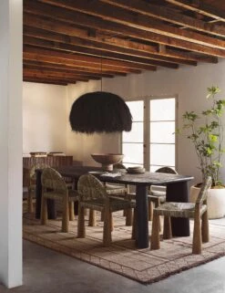 Exaggerated and sculptural, this chair is an instant statement piece. The half-moon back and square seat are crafted from woven sea grass and paired with conical teak legs. Style several around your dining table for a dramatic look or use as an accent chair in a vignette.