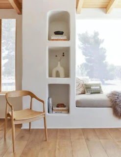Add mid-century charm to your dining space with this set of dining room chairs. Made entirely from mindi wood, its subtly curved and streamlined frame is comfortable, letting you enjoy long meals. In a black or natural wood finish, these dining arm chairs are versatile accents that can sit with light, airy spaces or moody rooms alike.