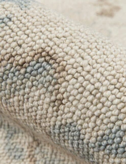 A warm, light neutral palette features soft pops of blue for this traditionally patterned area rug. The rug’s modern construction is made for easy-care appeal in high-traffic areas and everyday spaces.