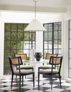 We love the contrasting textures of the Jaz dining chair. The wood frame and caned backrest bring a transitional element to these kitchen chairs, topped with a simple cushion for added comfort.