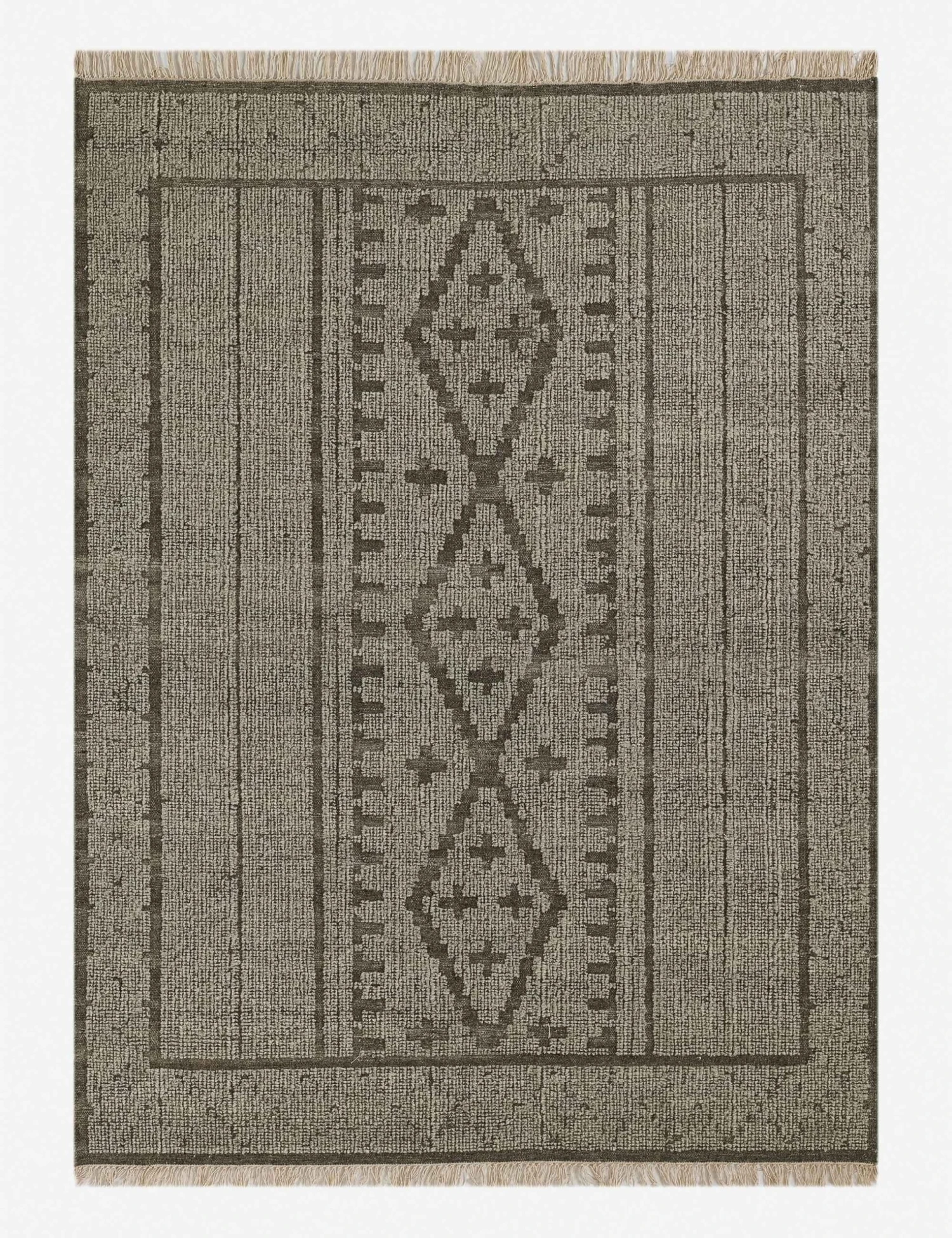 In a darker neutral palette, this area rug stylishly combines earth tones and timeless geometric pattern. Handcrafted from a wool-cotton blend, we love how its design instantly adds visual impact. Place this durable, low-pile floor rug in a high-traffic area like your living, dining, or entryway spaces.