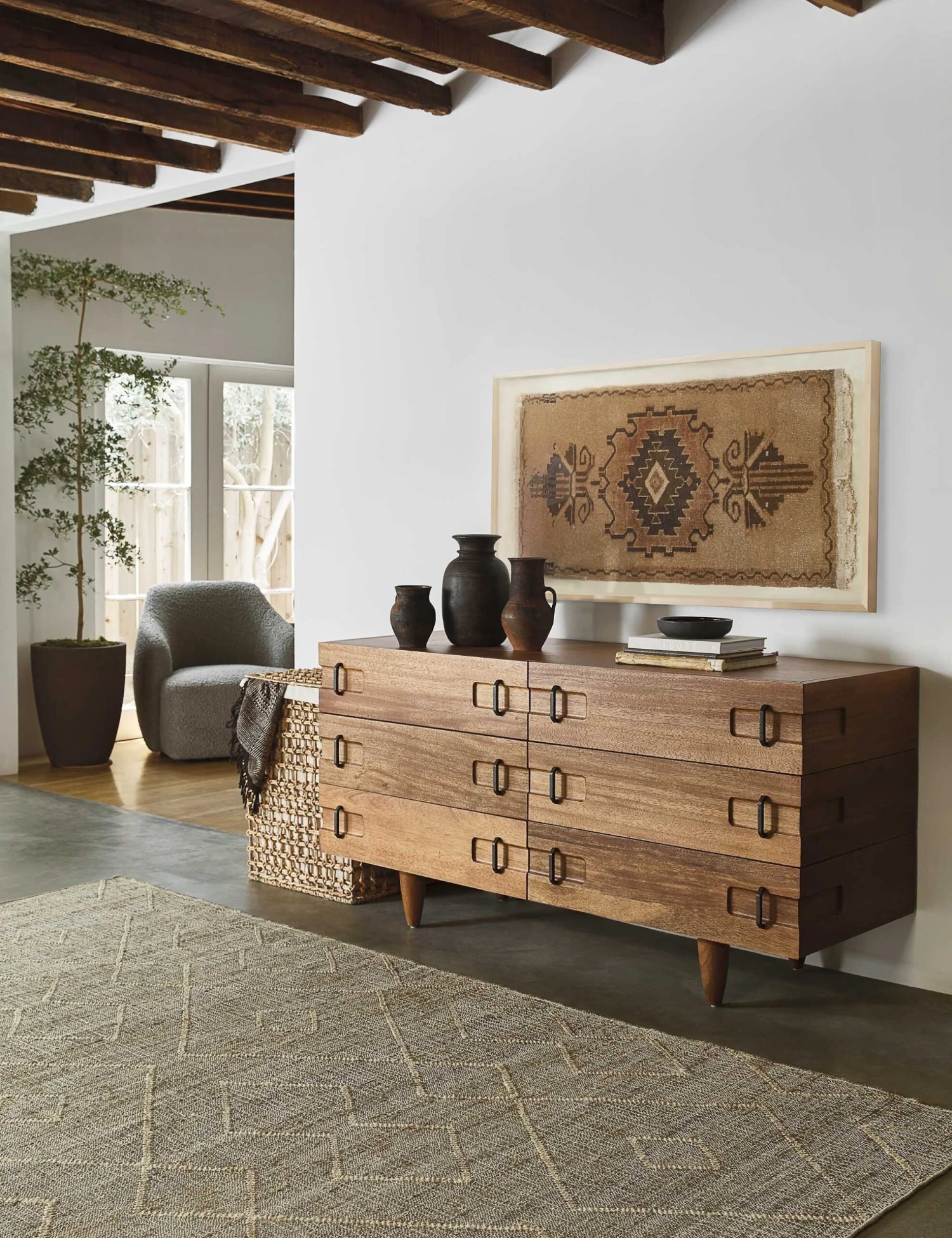 A jute area rug lends natural texture to a modern space. Handwoven with a diamond pattern throughout, we love this low-pile, durable floor rug in just about any room for a more organic look.