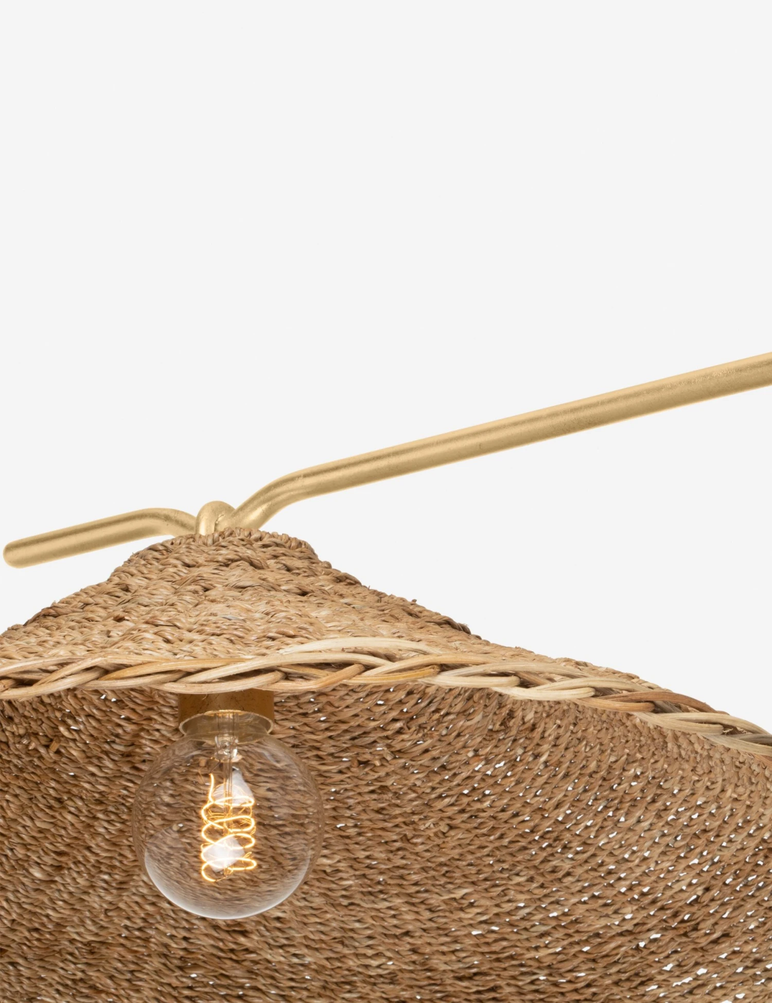 Natural texture meets sleek elegance in this linear pendant design. The organic shape of the woven Lampakanay grass shades inspires an artisanal feel paired with gilded arms for added warmth and sophistication. Create statement lighting over a table or kitchen island with this unique pendant light.