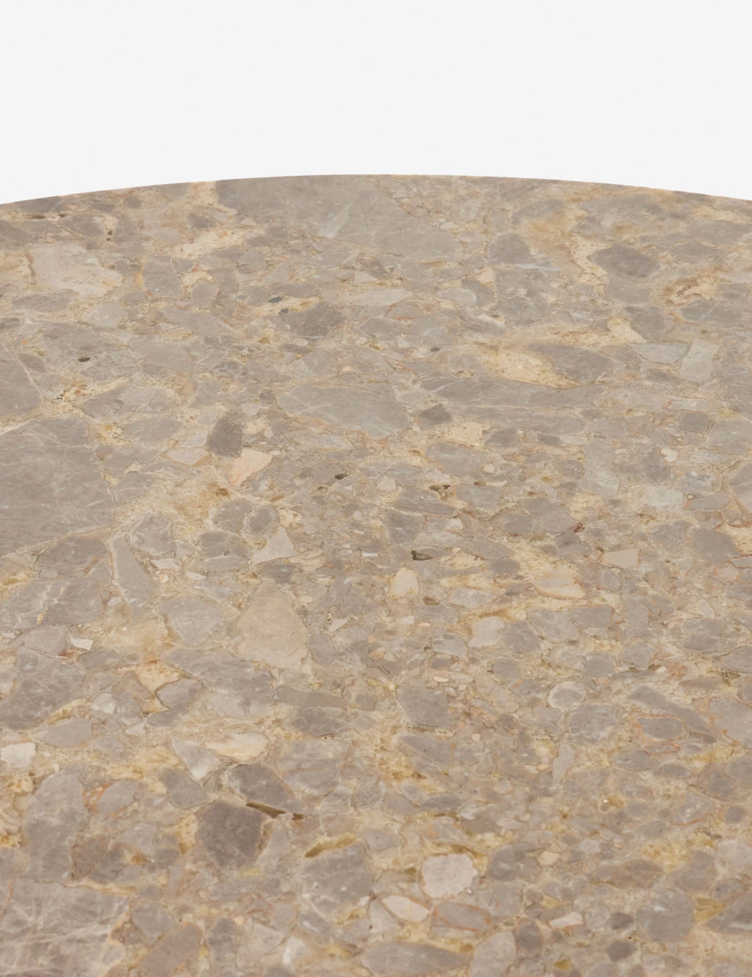 The Olena dining table offers a grounding impact with its elemental shape. The clean lines of the tapered pillar base support the stone top with a sturdy bearing that strikes a sculptural silhouette. With room for six, this round table is the perfect anchor piece for an artfully modern dining curation.