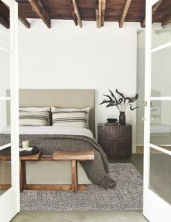 Intricately patterned area rugs instantly make any room feel more complete. This hand-tufted floor rug has an eclectic look that mixes well with modern styles, with a neutral palette and durable construction that’s great for high-traffic areas.