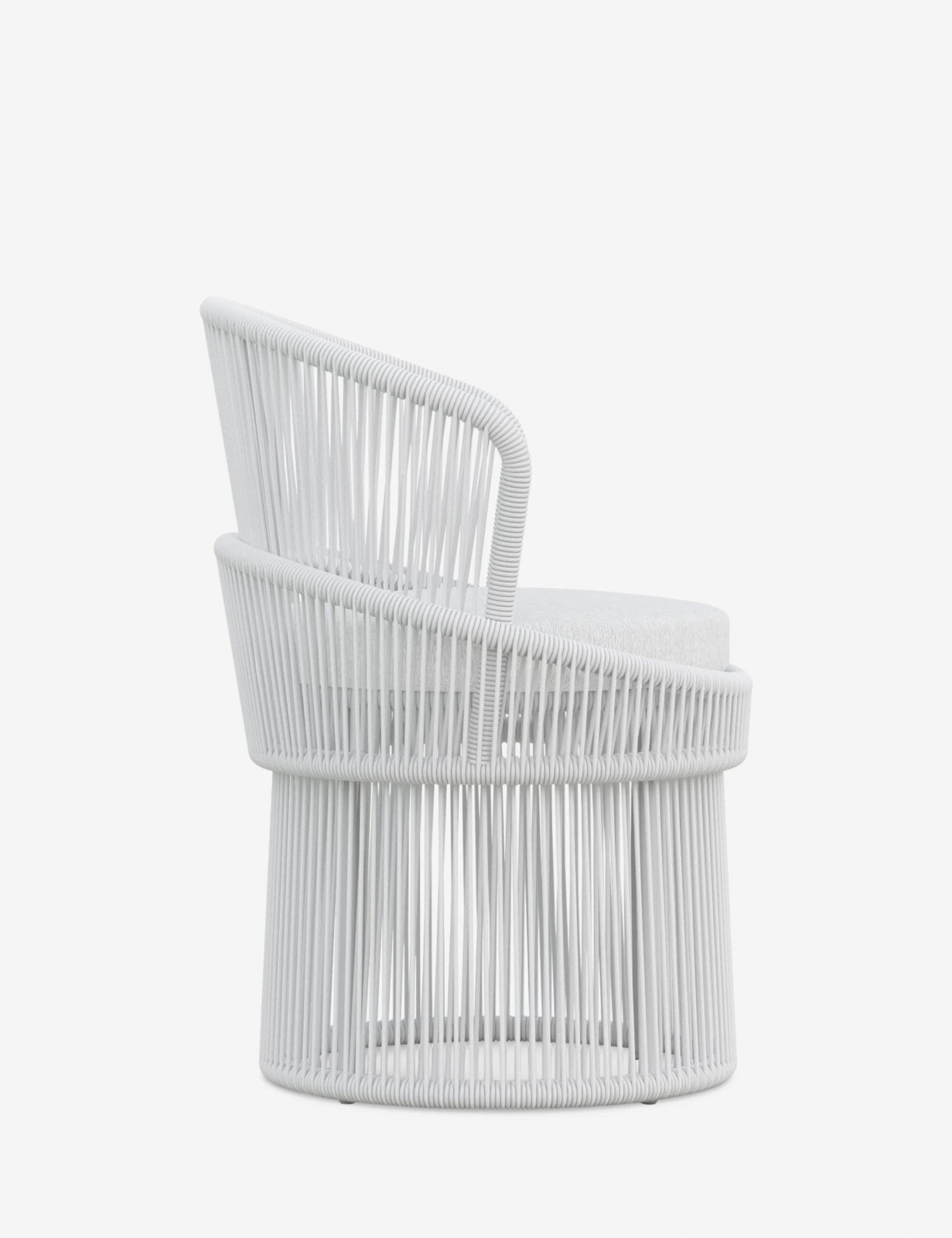 Elevate your indoor-outdoor style with the Portillo dining chair. The aluminum frame curves into a tall-backed silhouette—strung with all-weather rope and fitted with a deep, performance cushion that removes for easy care. The dramatic profile sets a place for elegance—plus, this dining seat swivels for a dynamic touch tableside.