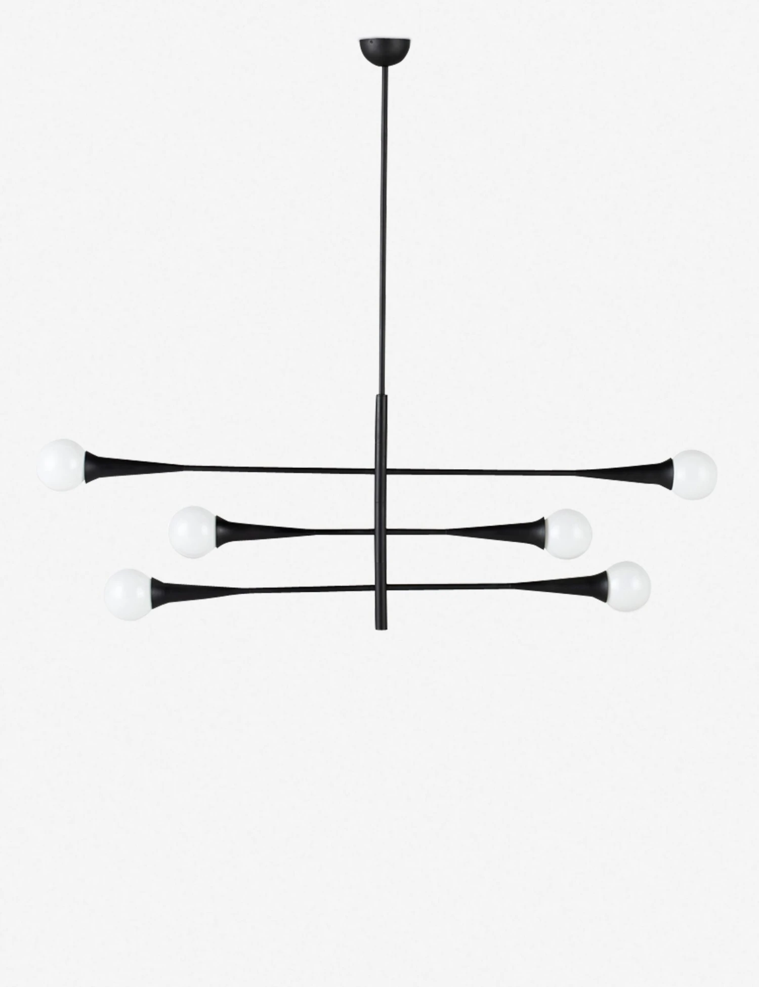 Perfect for a modern dining room or living room, this pendant light is designed with a matte black finish, and three adjustable arms with trumpeted sockets. Line them up, create a grid-like look, or fan them out — the choice is yours.