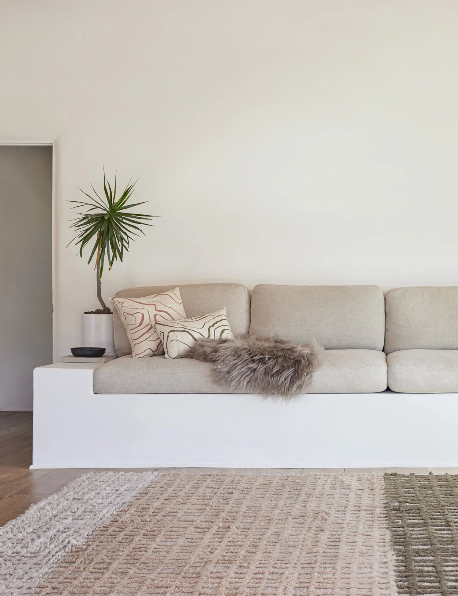 Élan Byrd is a Miami-based artist and textile designer who creates tactile, abstract wall hangings, collages, and paintings that celebrate organic, natural forms. With a focus on texture and construction, this exclusive collection of handcrafted area rugs is inspired by Élan’s natural fiber artwork. Hand-knotted and artfully sheared, this multicolored floor rug adds luxe high-low texture.