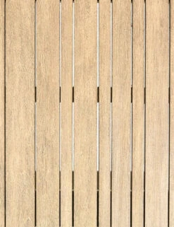 Outdoor dining just got a stylish upgrade. This wood table features a modern look with a slatted rectangular top and angled legs.