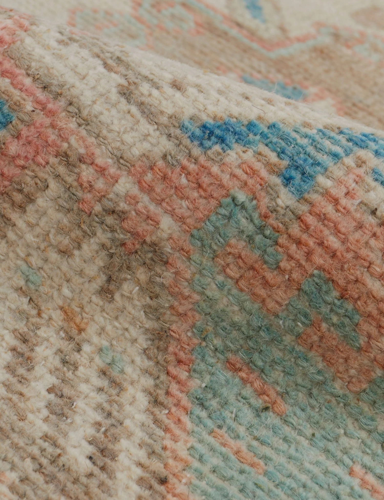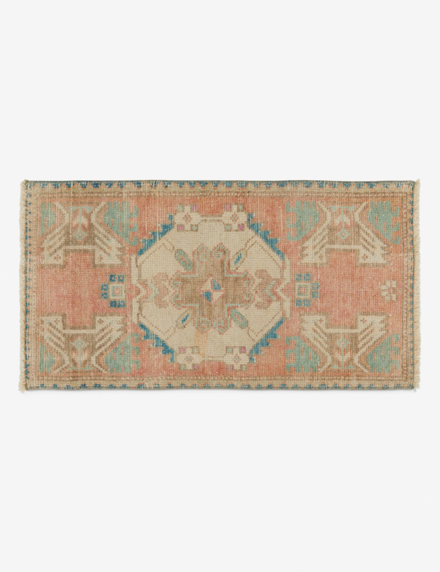 A vintage wool rug instantly transforms your space—adding warmth and rich color, all while feeling like a discovery from far-flung travels. Made entirely by hand in Turkey, this hand-knotted floor rug is truly an investment for your home, a stunning one-of-a-kind centerpiece to build and layer your style onto. This mini size is ideal for a bathroom, entryways, or by the kitchen sink.